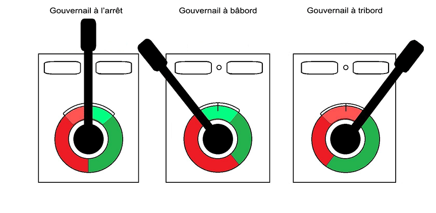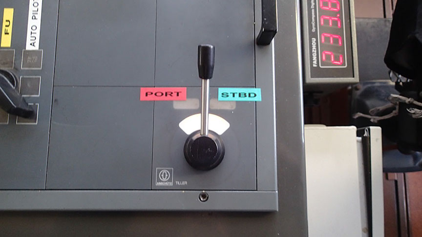 Selon l'OMI, les commandes et les affichages de la passerelle doivent être étiquetés clairement selon leur fonction, si possible à l'aide de symboles normalisés. Le mouvement d'une commande d'appareil à gouverner en sens horaire (vers la droite) doit déclencher le mouvement en sens horaire du dispositif ou de l'élément commandé. Les commandes devraient être choisies de sorte que la direction du mouvement de la commande corresponde au mouvement de l'élément de matériel en cause ou du navire. De plus, « la direction du mouvement des éléments de commande du matériel de manœuvre devrait correspondre à la direction de l'effet sur le navire qu'ont les installations ainsi commandéesNote de bas de page 45 ».
