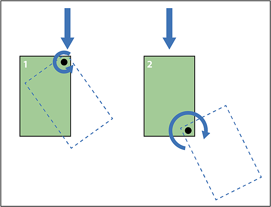 Dans l'événement à l'étude, les pieux d'ancrage en amont ont été levés en premier. Ainsi, lorsque le pieu d'ancrage à tribord en aval s'est temporairement coincé, le degré de giration du chaland était plus élevé que si un pieu d'ancrage en amont s'était coincé (figure 17).