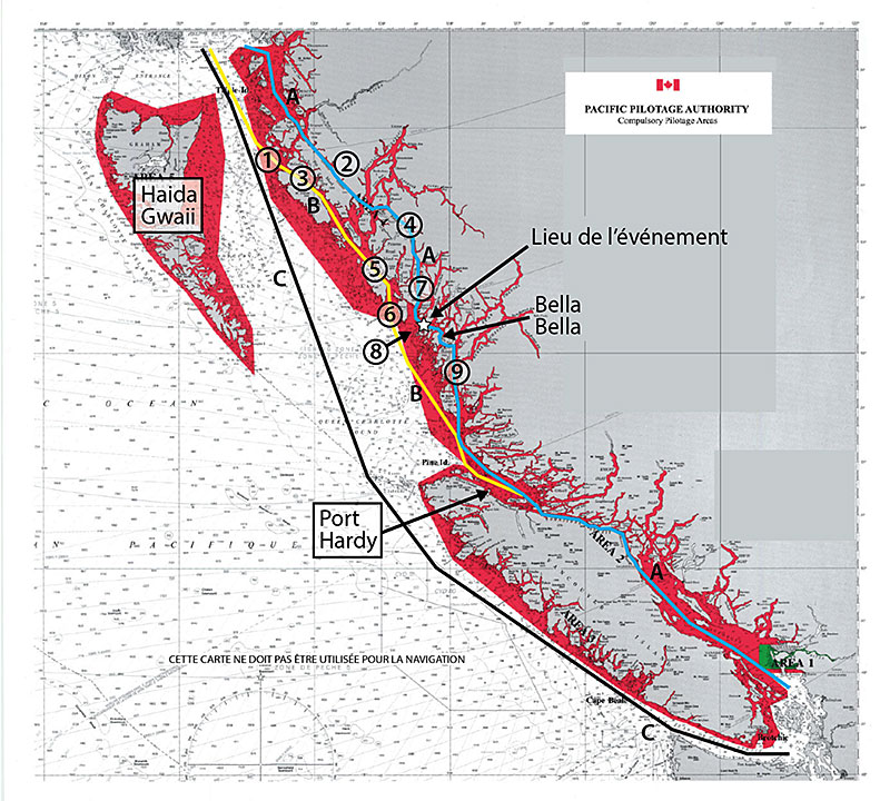 Source : Administration de pilotage du Pacifique Canada, avec annotations du BST