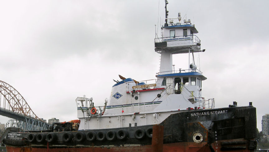 Le Nathan E. Stewart était un remorqueur de port et de haute mer conventionnel en acier (figure 1). Il était doté d'une timonerie supérieure et inférieure pour la navigation. On pouvait accéder à la timonerie supérieure depuis la timonerie inférieure par un escalier intérieur. La timonerie supérieure était à aire ouverte et comportait des fenêtres offrant une vue dégagée dans presque toutes les directions. Une chaise occupait l'espace au centre. On assurait habituellement la navigation du remorqueur depuis la timonerie supérieure.