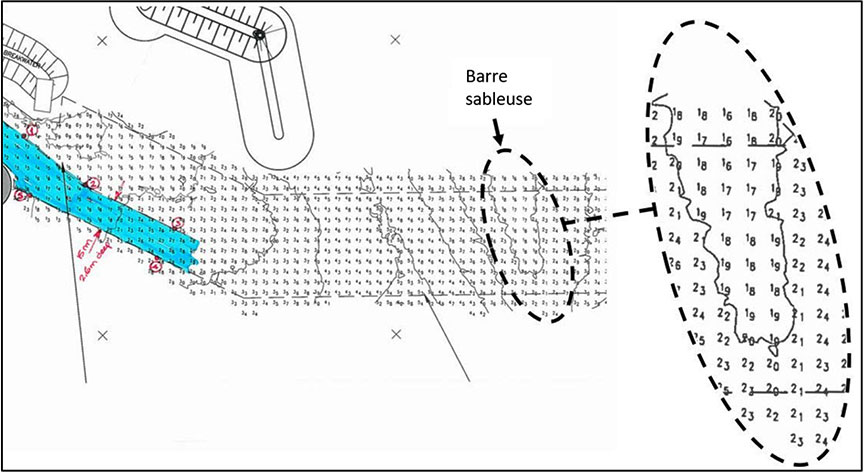 Le BST a déjà enquêté sur des événements mettant en cause des barres sableuses à l'approche d'un port. Dans un de ces événements, la position précise d'un chenal nouvellement balisé n'était illustrée sur aucune carte et n'avait été communiquée d'aucune façon aux utilisateurs du portNote de bas de page 6 . Dans un autre événement, l'ampleur de l'envasement et l'étendue d'une barre sableuse n'avaient pas été communiquées aux utilisateurs du portNote de bas de page 7 .