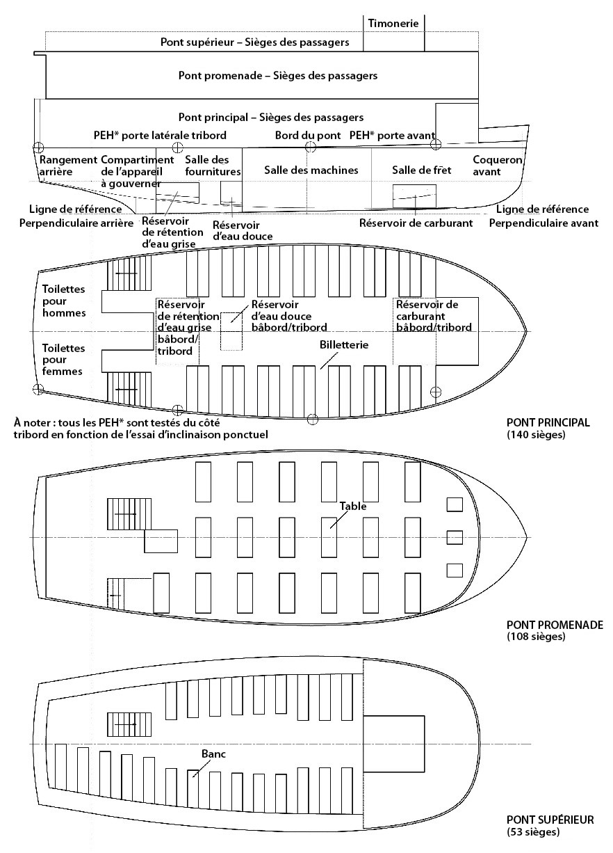 Source : MetalCraft Marine Inc., Intact and Damage Stability Information Booklet For “M.V. Island Queen III” (2 février 2011), avec annotations du BST