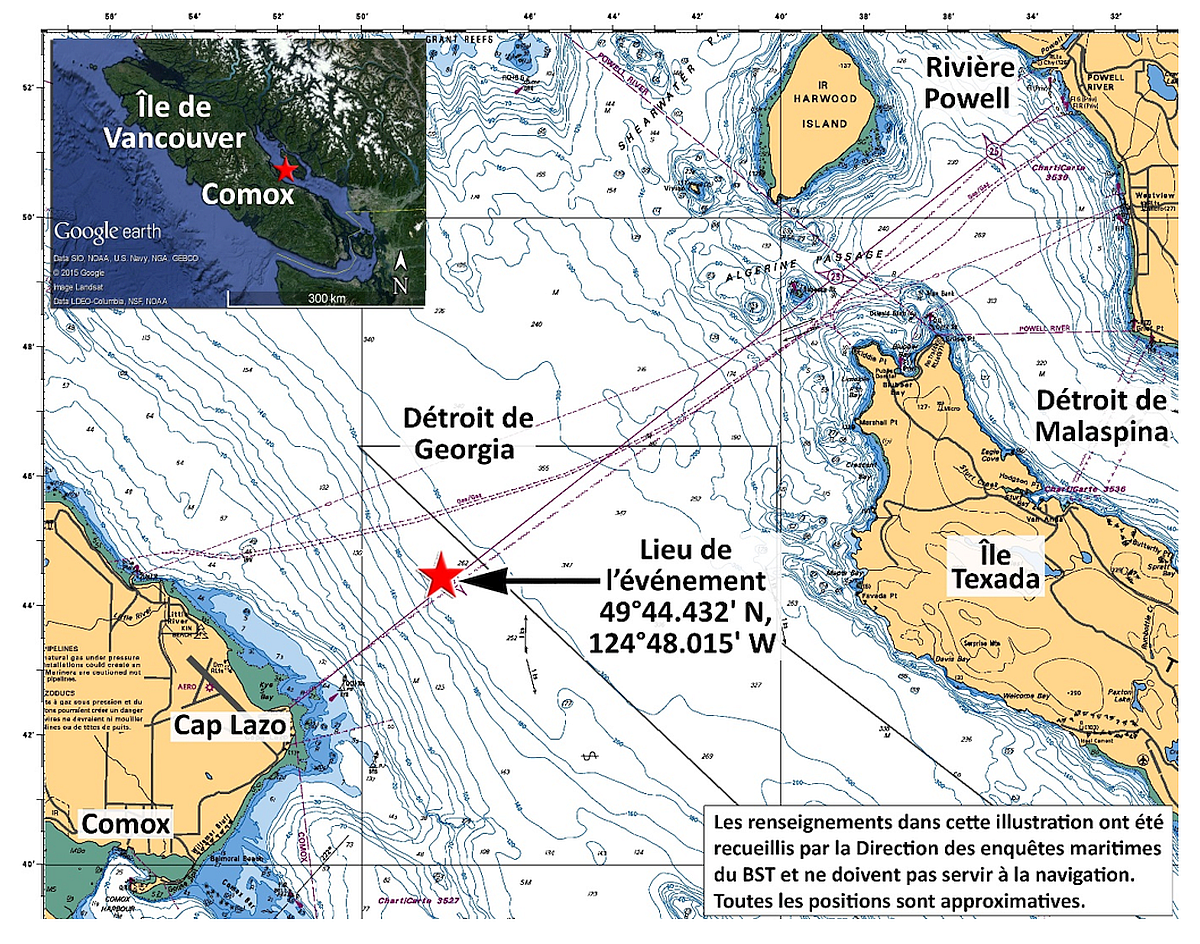 Pour vérifier si l'équipage connaissait bien le bateau, le propriétaire avait donné une formation de familiarisation au capitaine et au mécanicien pendant que le bateau était ancré à Comox (Colombie-Britannique).