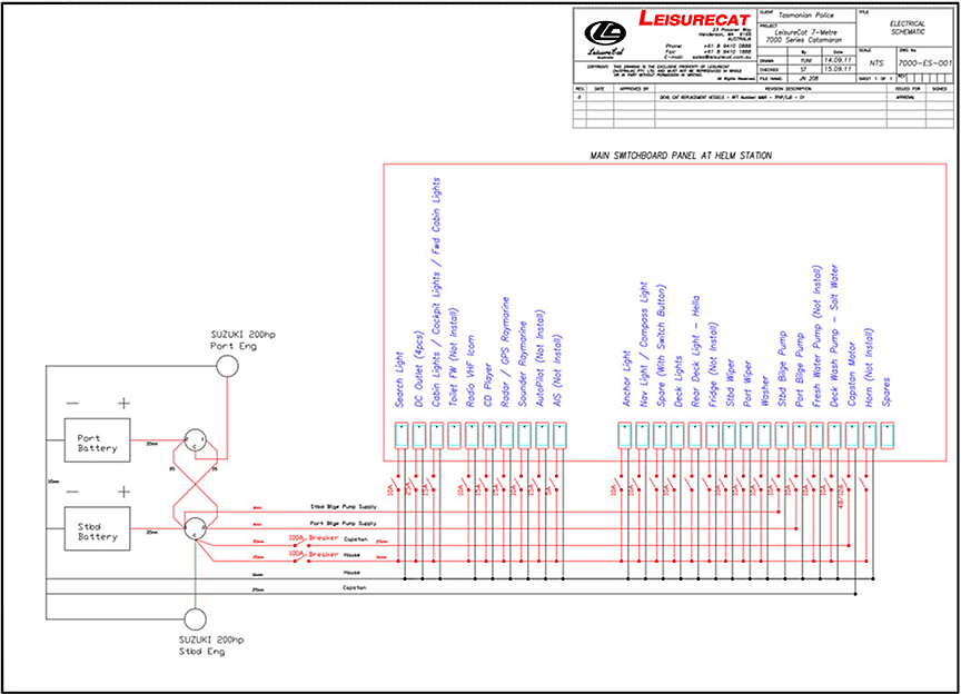 Dans la configuration d'origine des batteries, le bateau était équipé de 2 sélecteurs qui étaient connectés séparément à chaque batterie, et le circuit était établi de manière que les batteries ne pouvaient pas fonctionner en bloc. Lorsque le bateau a été remotorisé, il a été équipé de 2 batteries et d'un seul sélecteur. Ces modifications ont éliminé les caractéristiques de sécurité intégrées à l'origine par le constructeur : les 2 batteries pouvaient désormais fonctionner en bloc et être déchargées simultanément lorsque le sélecteur était réglé à la position 1 et 2. Par conséquent, si les 2 batteries fonctionnant en bloc se déchargeaient, l'équipement vital (comme les moteurs, les pompes de cale et les radiotéléphones VHF) ne serait plus alimenté.
