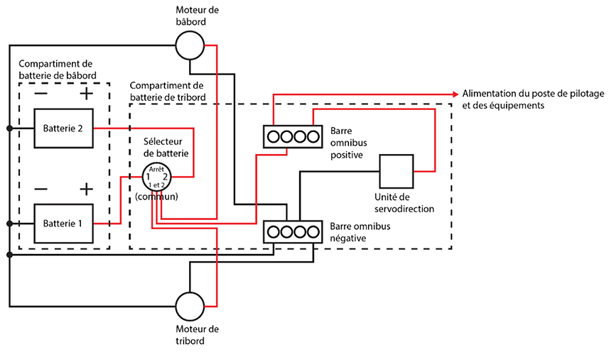 Annexe F – Circuit de batteries recommandé par le constructeur du bateau pour un système à 2 moteurs hors-bord (Suzuki ou Honda)