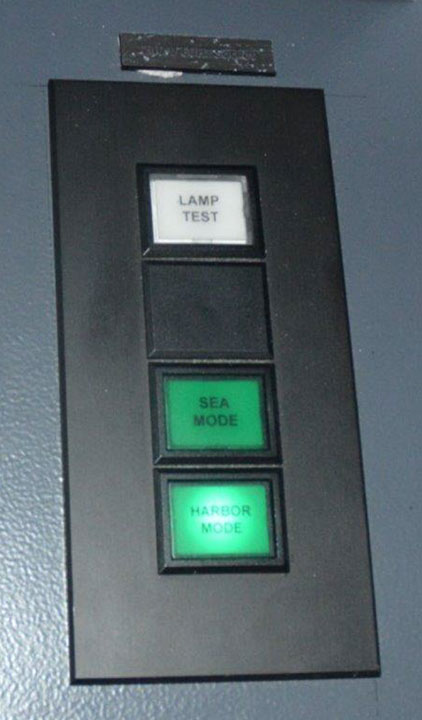 Le navire est muni d'un pilote automatique et de 2 commandes manuelles d'appareil à gouverner (roue de gouvernail et POD). Le pilote automatique et les 2 commandes manuelles d'appareil à gouverner ont 2 modes de fonctionnement : le mode port et le mode mer (figure 5). Le mode mer sert habituellement à faire la transition à la navigation en eaux libres; le mode port sert à manœuvrer le navire dans les eaux resserrées et pour aller à quai. Quand la vitesse d'un navire dépasse 8 nœuds, l'alarme de mode port/mer retentit pour informer le capitaine de l'option de passer en mode mer. Quand on utilise le pilote automatique ou la commande POD pour gouverner en mode mer, l'amplitude du mouvement des POD par rapport à leur axe longitudinal est limitée à ±30°Note de bas de page 16.