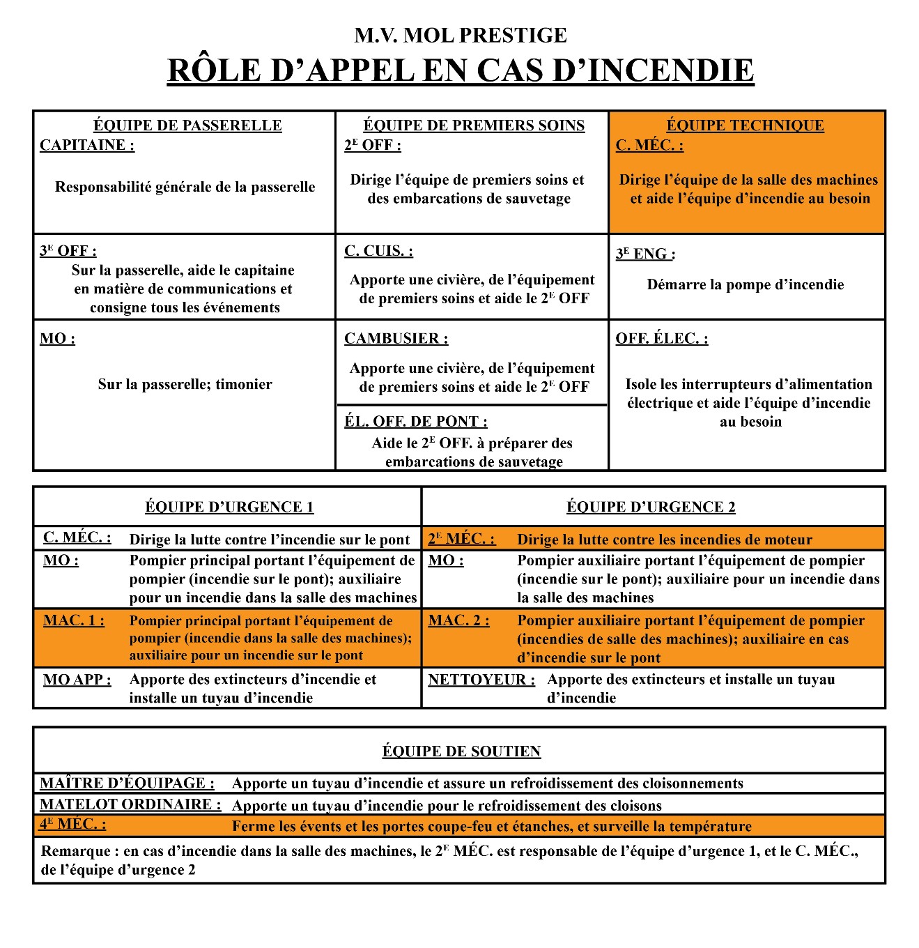 | 30 janvier 2018 | 21 h 20 | Tous les membres d’équipage, sauf ceux se trouvant dans la salle des machines, se rassemblent à leurs postes de rassemblement respectifs. |