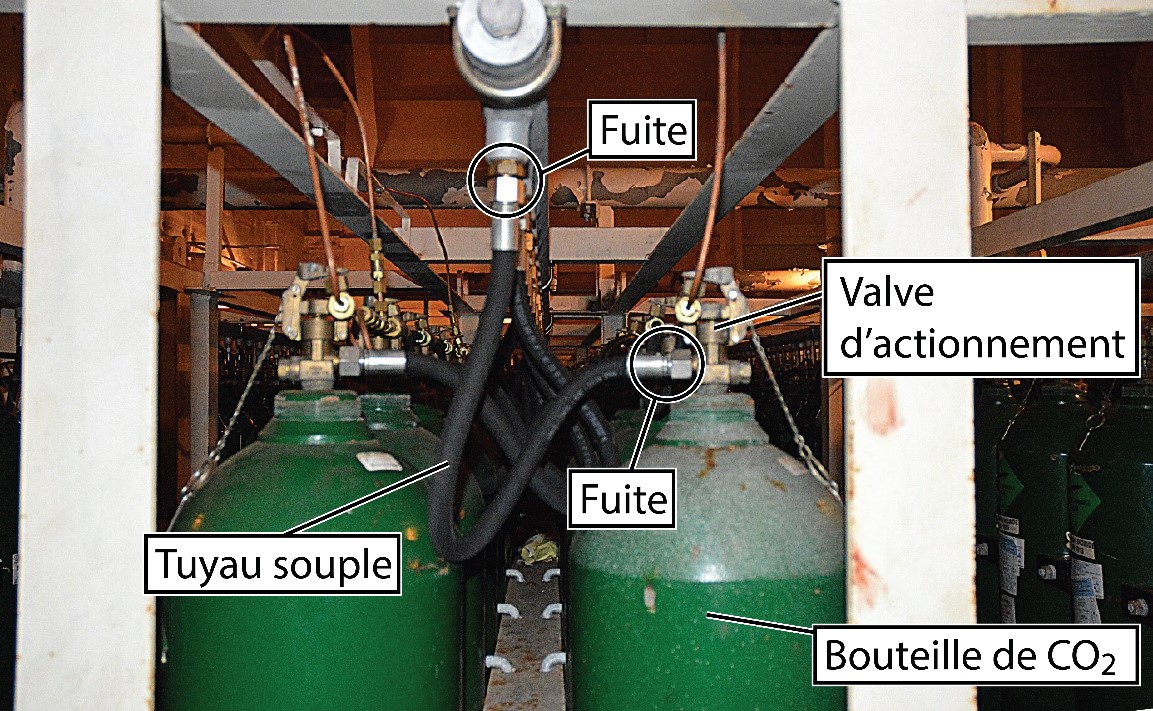 À bord du MOL Prestige, des fuites de canalisations et d’unités essentielles à la sécurité n’ont été découvertes que lorsque le système a été inspecté après l’incendie. Les programmes d’inspection et d’essai des systèmes de CO2 doivent donc comprendre des dispositions qui aideront à assurer leur intégrité.