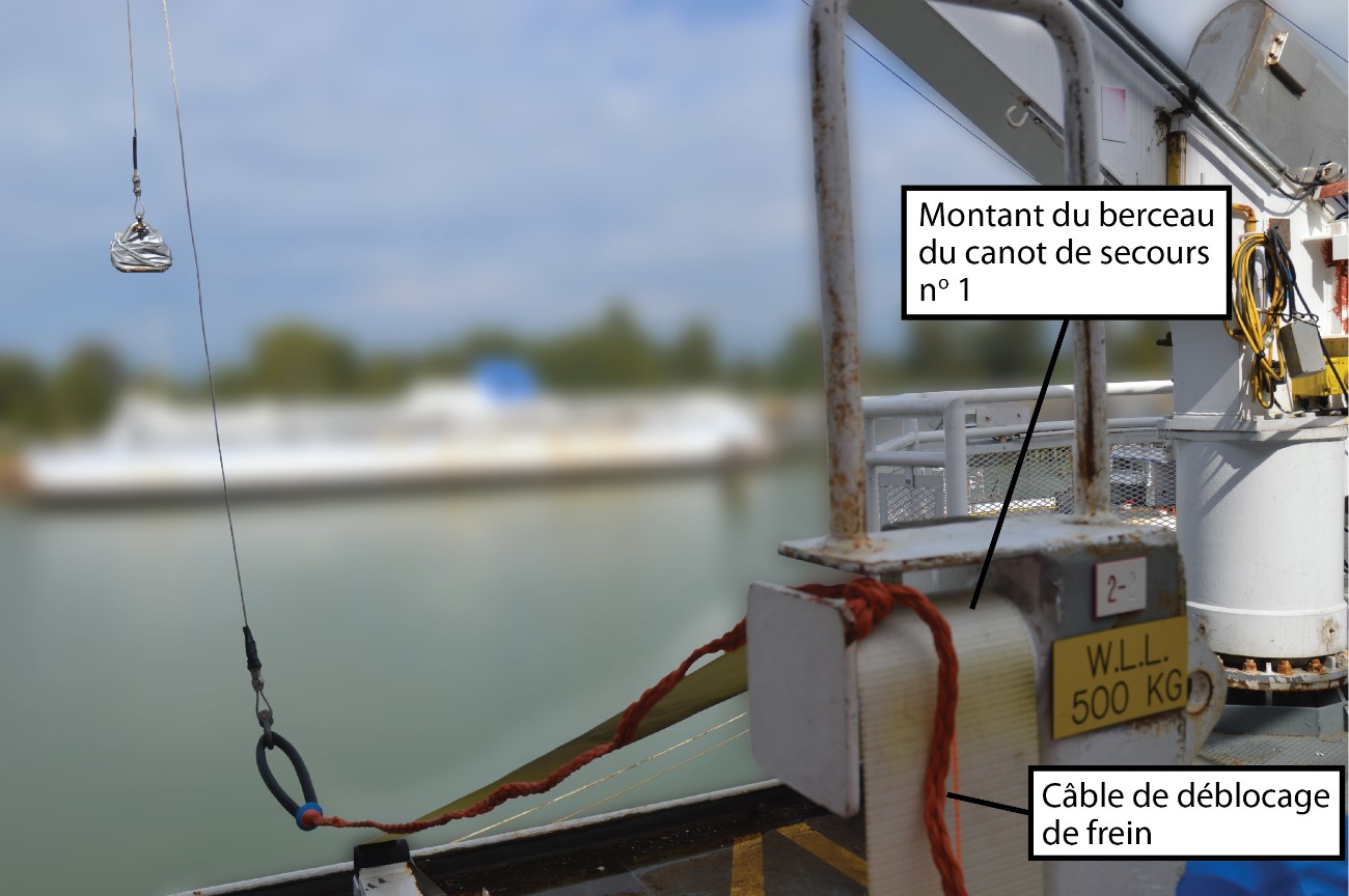 - Certains membres des équipages des canots de secours avaient pris l’habitude officieuse de retirer le sac du câble de déblocage de frein du canot de secours no 1 de son compartiment à bord et de le laisser sur le pont lorsqu’ils ne mettaient pas eux-mêmes le canot de secours à l’eau.