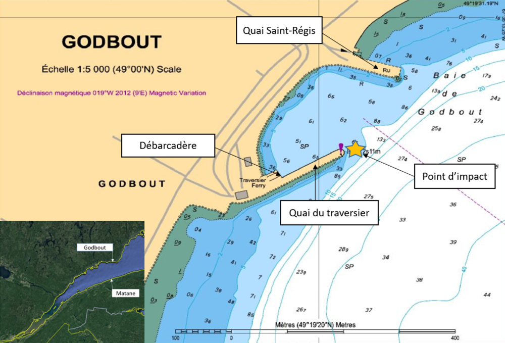 Le 25 février 2019 à 8 hNote de bas de page 2, l'Apollo a quitté le port de Matane à destination de Godbout (Québec), avec 100 passagers et 28 membres d'équipage à son bord. Le pont des véhicules du navire était chargé, au maximum de sa capacité, de voitures et de camions. Le voyage s'est déroulé de la façon habituelle.