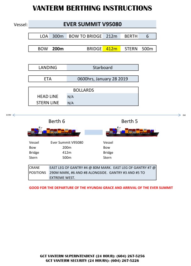Annexe B – Instructions d’accostage à Vanterm pour l’Ever Summit