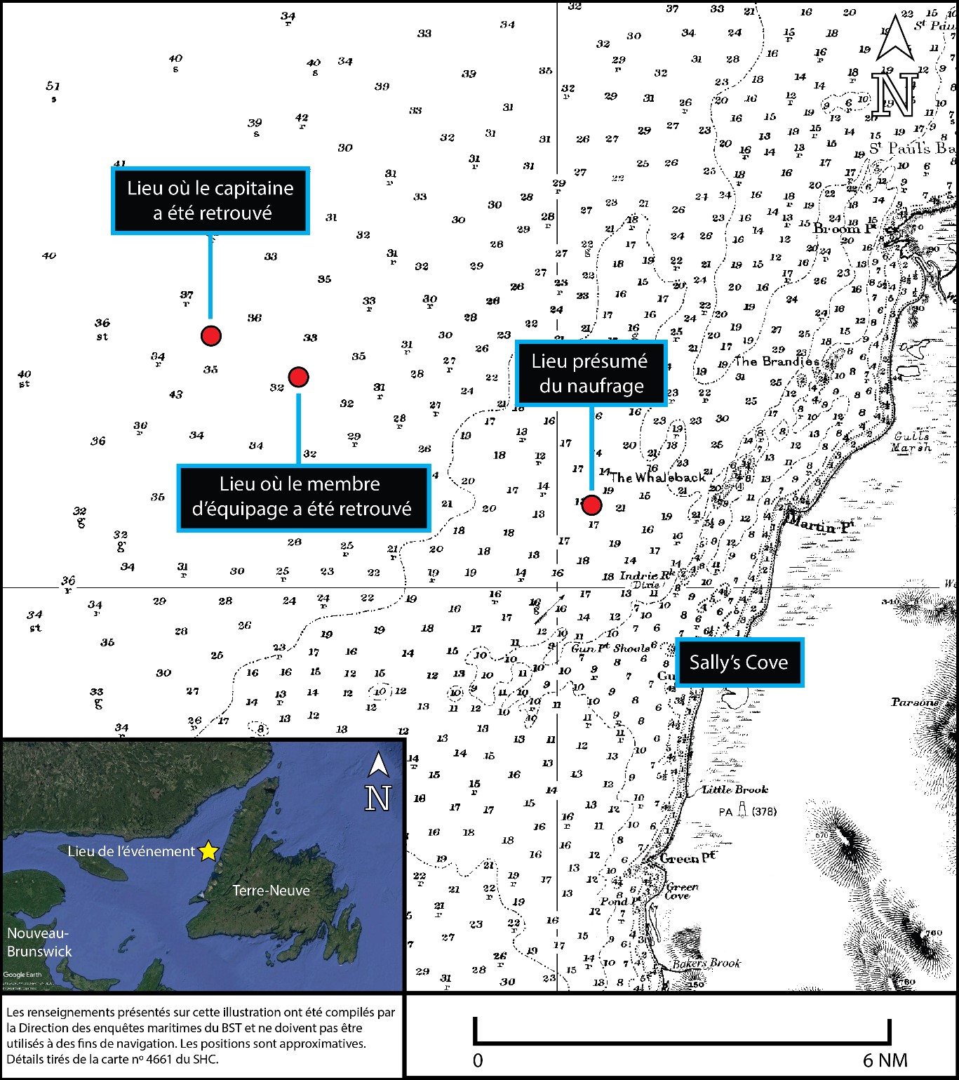 3 NM à l’ouest-nord-ouest de Sally’s Cove (Terre-Neuve-et-Labrador)
