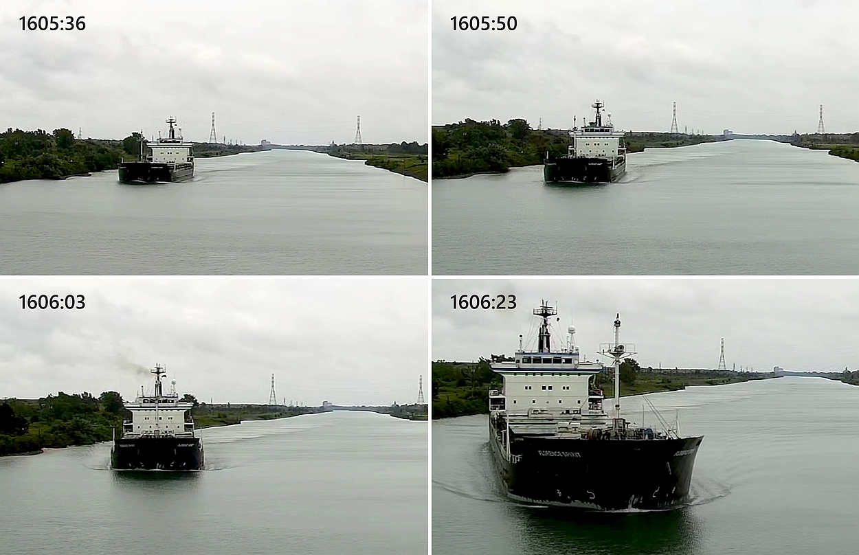 Lorsque les 2 navires ont modifié leur trajectoire de 4° à 0,8 NM, le capitaine a commencé à surveiller visuellement l’Alanis afin de pouvoir ordonner le prochain changement de cap pour ramener le Florence Spirit en parallèle dans le canal au même moment que l’Alanis. Bien que l’Alanis s’éloignait de l’axe central du canal, le capitaine percevait visuellement, à tort, que le navire se trouvait toujours au centre. Un certain nombre de facteurs ont contribué à cette perception erronée. Il était difficile de discerner visuellement l’Alanis étant donné qu’il se déplaçait beaucoup plus lentement que le Florence Spirit, qu’il y avait peu de points de référence pour la navigation dans le paysage, que des conditions de lumière plate régnaient, et que le Florence Spirit se trouvait déjà à l’écart de l’axe central du canal, de sorte que le capitaine observait l’Alanis d’une position décalée. Ainsi, pendant que le capitaine attendait des indications visuelles que l’Alanis s’était écarté de l’axe central, le Florence Spirit a continué à se diriger vers la berge, atteignant un écart latéral de 32 m. Selon le Manuel de la Voie maritime, la distance minimale de sécurité entre les 2 navires était de 21,1 m, signifiant que l’écart latéral de chaque navire devait être d’au moins 21 m lui aussi.