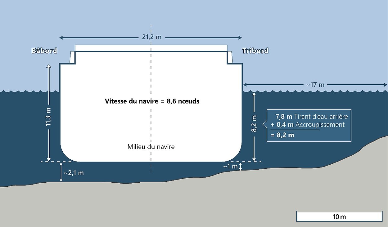 - En l’absence de lignes directrices à l’intention des équipes à la passerelle sur les vitesses de navigation sécuritaires pour les rencontres et dépassements et sur les dangers connexes liés aux effets hydrodynamiques dans des eaux restreintes, il y a un risque que les rencontres ne s’effectuent pas de façon sécuritaire.