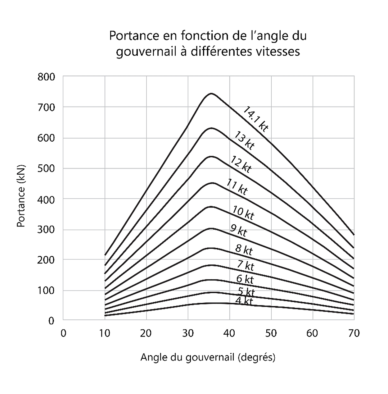 Durant les simulations, il a été démontré que les effets hydrodynamiques agissant sur le Florence Spirit au moment de l’événement étaient suffisamment intenses pour vaincre la force de portance du gouvernail quel que soit l’angle appliqué au gouvernail. Par conséquent, la force de portance générée par le gouvernail n’a pas été considérée comme un facteur causal de l’événement. Cela dit, il demeure important que les navigateurs aient accès à de l’information clé sur les facteurs pouvant influer sur le bon déroulement des manœuvres et donc sur la sécurité de la navigation.