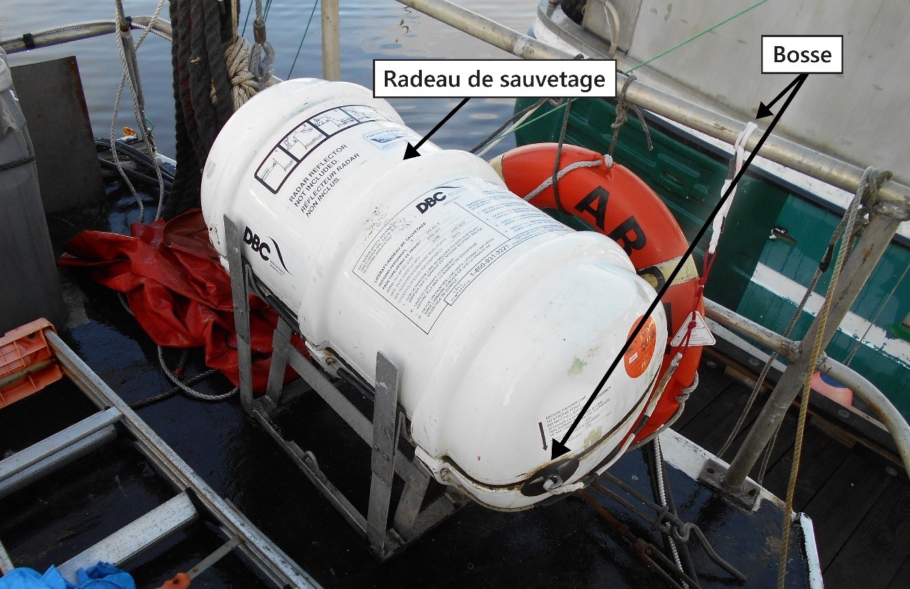 Le capitaine et l’équipage ne disposaient d’aucune autre instruction ou procédure de déploiement. Pendant le déploiement du radeau de sauvetage, la bosse a été détachée du navire; le capitaine et le membre d’équipage 2 ont ensuite passé le radeau de sauvetage au membre d’équipage 1, qui se trouvait sur le pont principal arrière. Le capitaine s’est rendu sur le pont principal arrière et a aidé le membre d’équipage 1 à larguer le radeau de sauvetage par-dessus bord; à ce moment-là, il n’avait plus de prise sur la bosse.