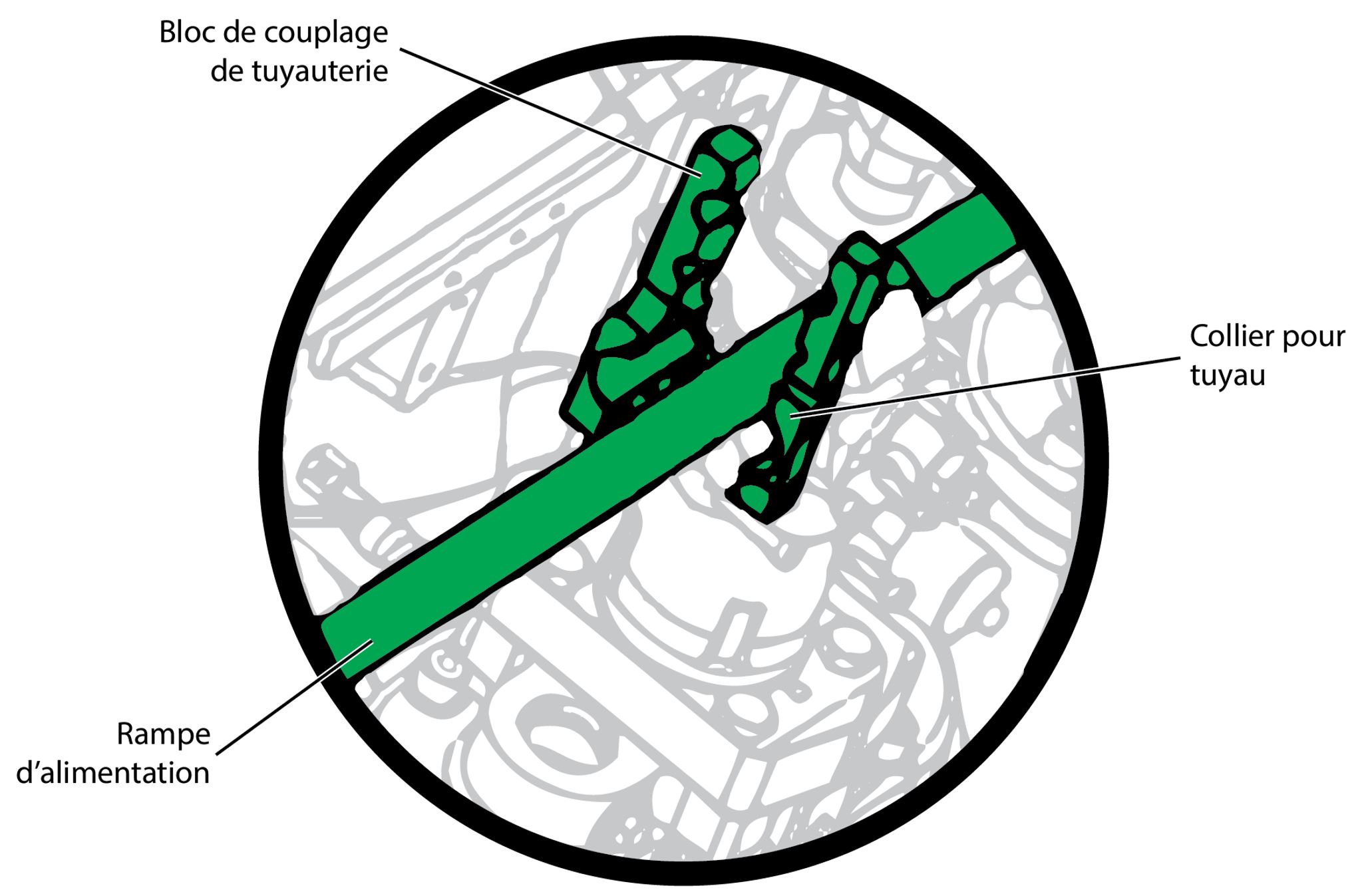 - les effets des pressions opérationnelles normales dans la conduite de carburant sur une réparation de tuyau simulée;