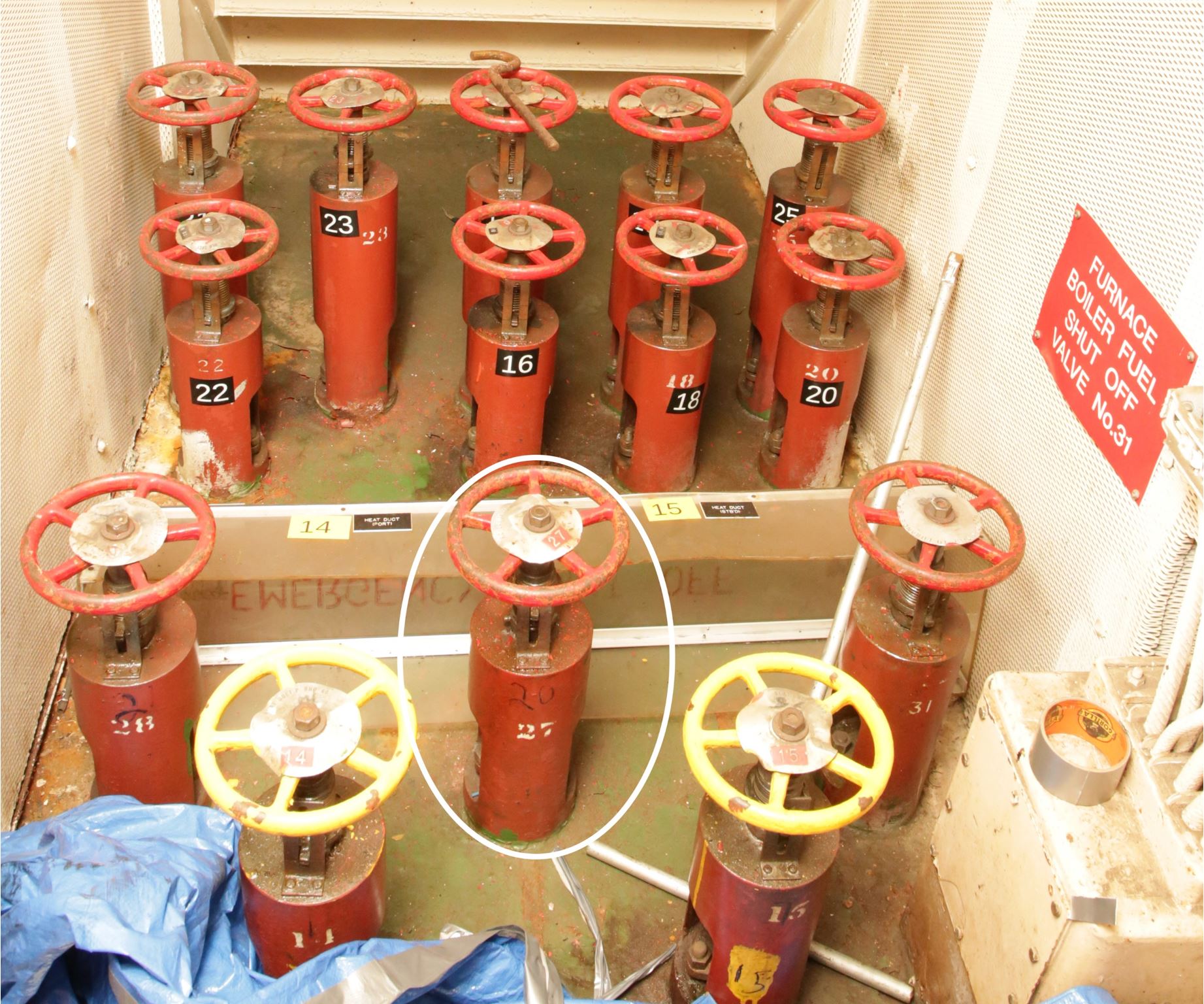 - Un composant non lubrifié de l’ensemble du robinet de carburant a empêché celui-ci de se fermer complètement, ce qui a permis au contenu du réservoir de jour de sortir par la rampe d’alimentation en carburant endommagée et d’alimenter l’incendie dans la salle des machines.