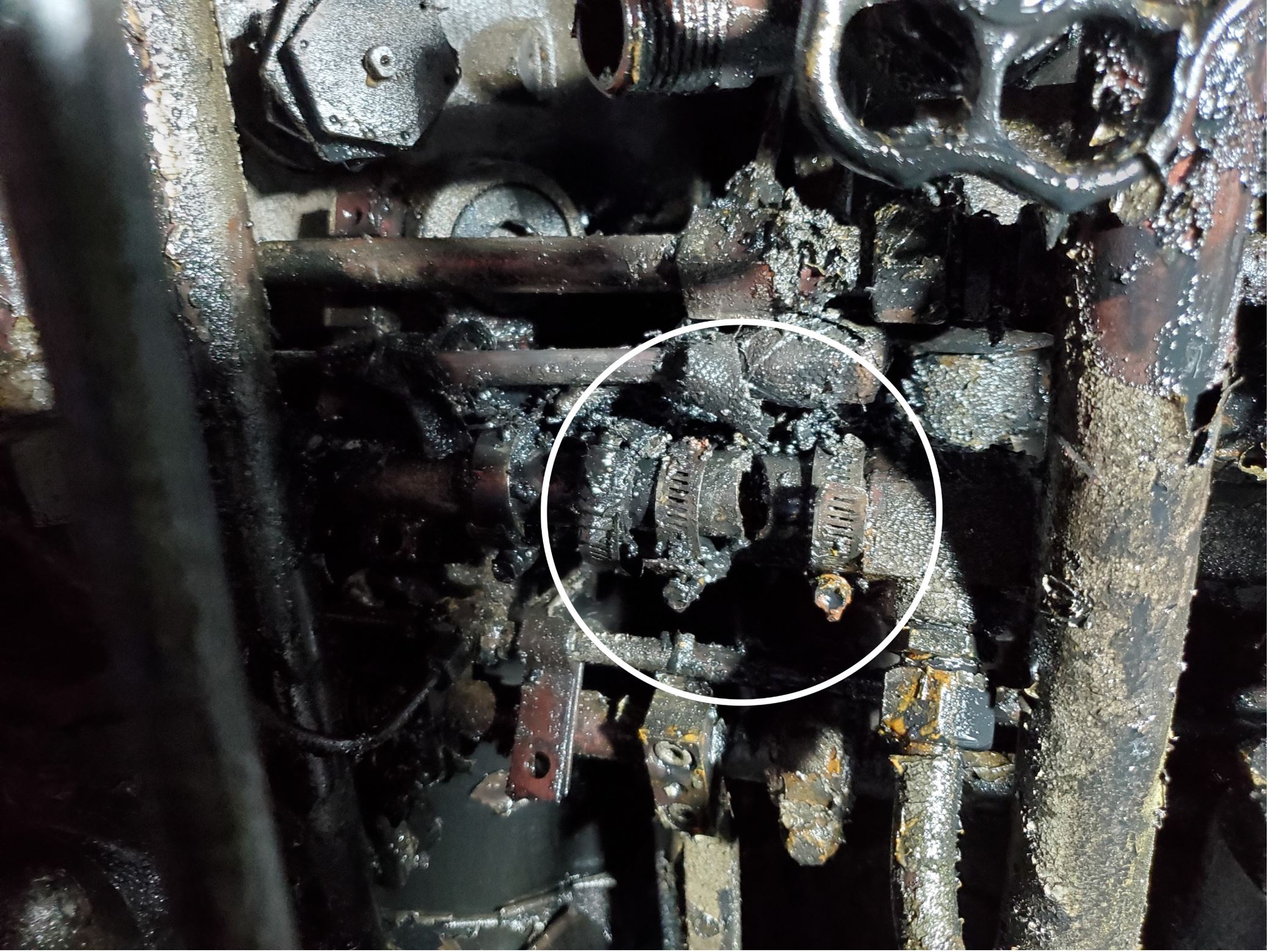 Le laboratoire du BST a conclu qu’une fuite soudaine aurait pu se produire sous l’effet combiné de la pression dans la conduite, de l’exposition au carburant, de la chaleur dans la salle des machines, des vibrations du moteur et d’un serrage marginal du collier.