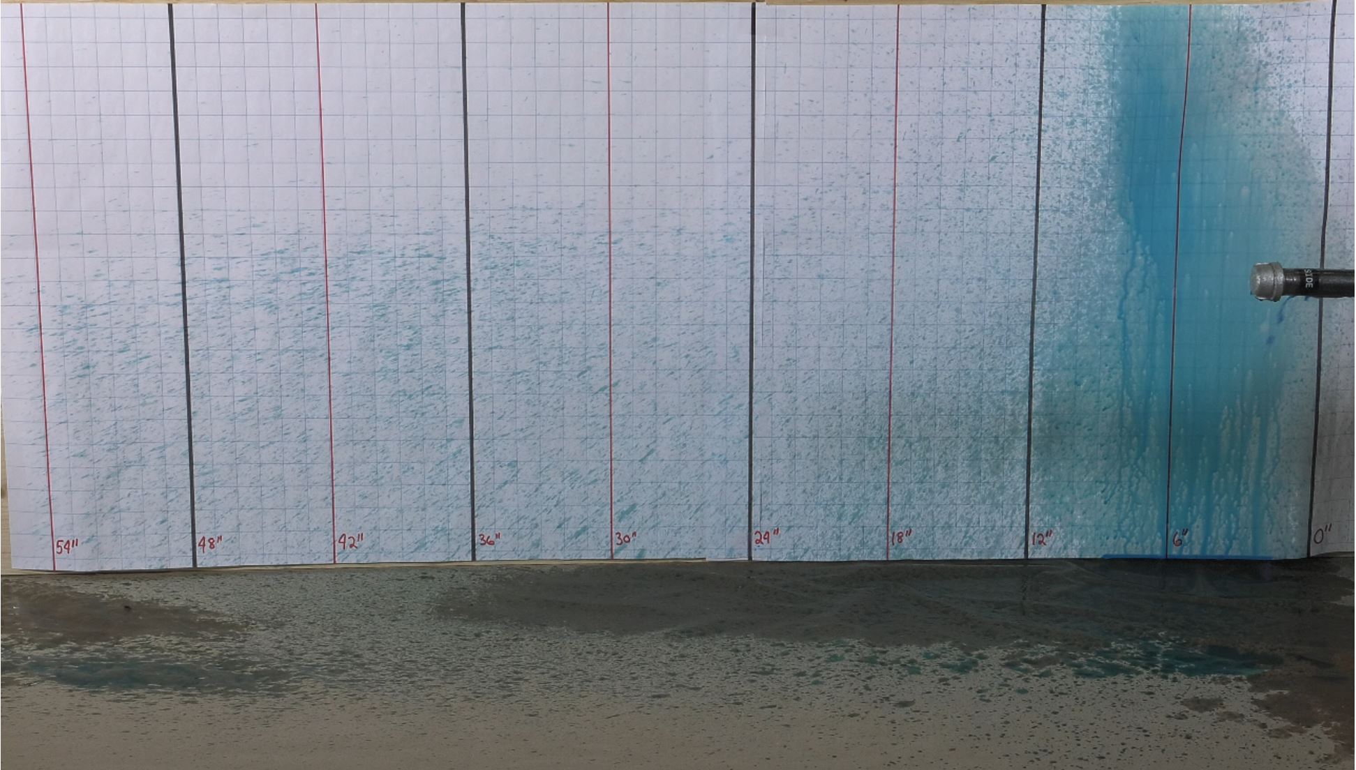 - Immédiatement à côté du tuyau serré, on a constaté que le carburant était pulvérisé sous la forme d’un anneau vertical autour de l’emplacement de la réparation et était projeté horizontalement jusqu’à au moins 54 pouces de la réparation simulée (figure B2).