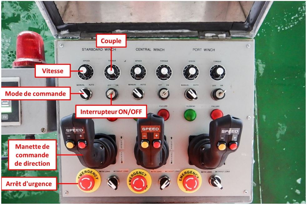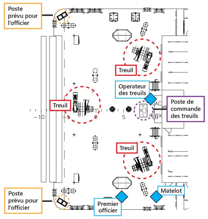 Il n’existait pas de manuel d’exploitation pour les treuils, l’interface de l’écran tactile était en espagnol, et le risque lié à l’utilisation de ces treuils pendant la phase dynamique d’amarrage n’avait pas été évalué.