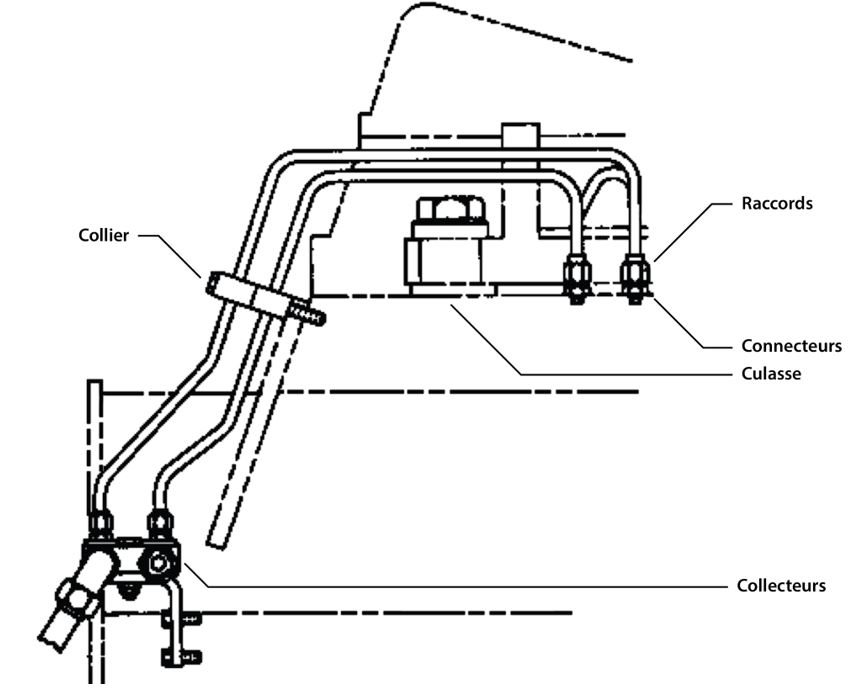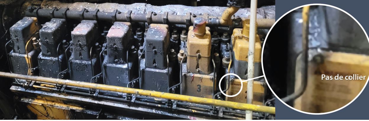 - Les colliers de retenue des conduites d’injection de carburant n’étaient pas en place, ce qui augmentait l’exposition des conduites de carburant aux effets des vibrations du moteur.