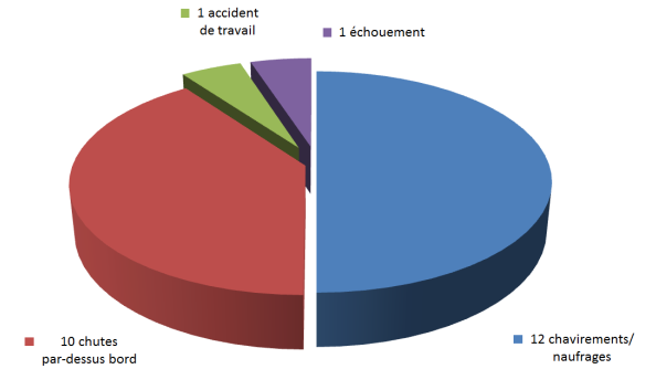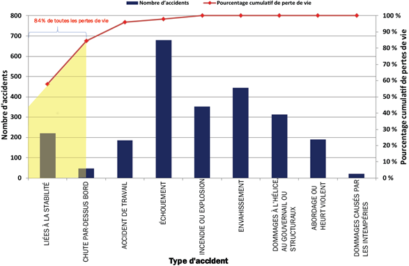 Malgré les efforts du Bureau et d'autres intervenants des secteurs public et privé, les causes des accidents de pêche sont souvent les mêmes que celles que le Bureau déplorait voilà une vingtaine d'années. Plus précisément, entre 1999 et 2008, 14 personnes en moyenne ont perdu la vie chaque année lors d'accidents de pêche.