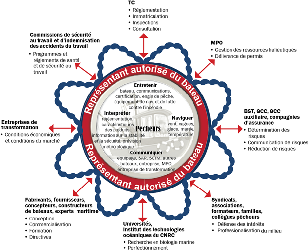 - Terme collectif qui désigne tous les groupes qui s'occupent de la sécurité dans le domaine de la pêche, et qui inclut les pêcheurs et leurs familles, les associations de pêcheurs, les spécialistes de l'éducation et de la formation du domaine maritime, les entreprises de pêche, les conseils de certification dans le domaine de la pêche, des architectes navals, des chantiers navals, des organismes gouvernementaux de réglementation et des enquêteurs