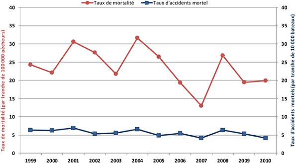 - Nombre de pertes de vie par tranche de 100 000 pêcheurs