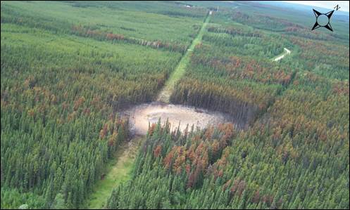 - Un grand cratère, d'une longueur de 17m, d'une largeur de 7,6m et d'une profondeur de 1,1m, a été créé. Une section de conduite d'une longueur de 6m s'est détachée du gazoduc de Nig Creek et a été projetée vers le nord-est, à environ 20m du point de rupture, en même temps que d'autres débris (Photo 2).