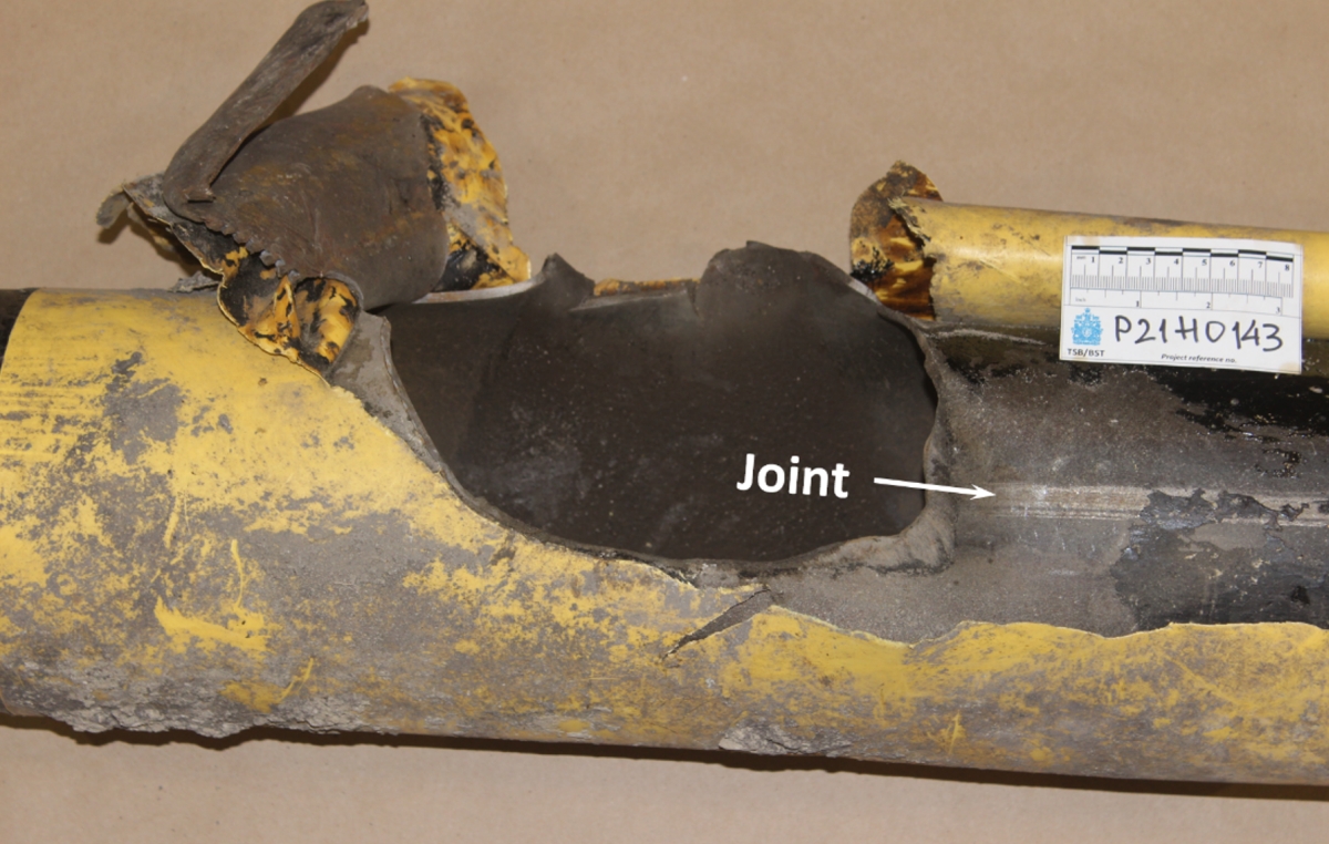 Un segment de la conduite rompue a été découpé et envoyé au Laboratoire d’ingénierie du BST à Ottawa (Ontario) pour être analysé.
