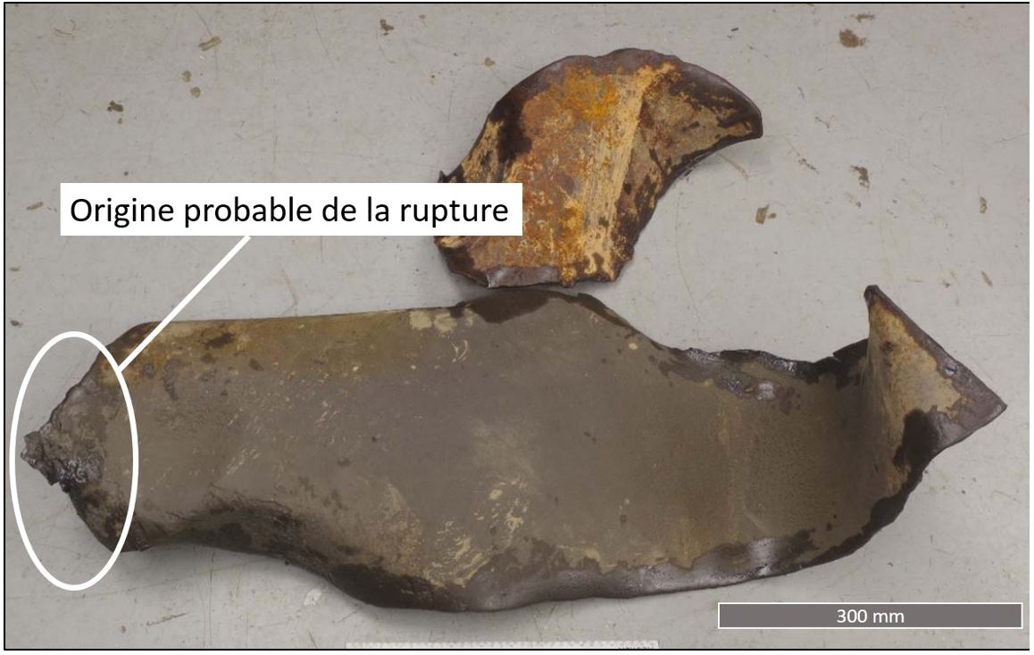 Les débris causés par la rupture ont été dispersés principalement vers le bas de la pente en direction nord-est. Deux fragments de conduite éjectés, ainsi que 25 m du tronçon rompu du gazoduc, ont été récupérés pour être examinés en laboratoire.