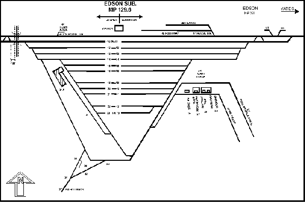 Pour sortir du triage Edson, les voies de triage se dirigent vers l'est en présentant une pente descendante de 0,3 ou 0,4 % où elles rejoignent deux voies principales (nord et sud) qui sont régies par le système de contrôle du trafic ferroviaire connu sous le nom de commande centralisée de la circulation (CCC).