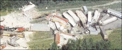 Après avoir roulé sur l'aiguillage de voie d'accés est de la voie 4, les 20 wagons ont dévalé la pente vers l'est en direction de la voie principale. Un dérailleur qui empêchait les wagons partis à la dérive de s'engager sur la voie principale à partir du triage Edson a été enlevé vers 1990. Les 20 wagons non contrôlés s'engagent alors sur le prolongement de la voie sud, à Edson-est, et se dirigent vers l'est sur la voie principale sud, vers Yates.