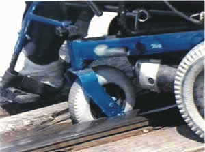 Étant donné la conception actuelle de la majorité des fauteuils roulants motorisés, et malgré les exigences futures de Transports Canada quant à des surfaces de passage à niveau lisses, les conducteurs de fauteuils roulants continueront probablement d'avoir de la difficulté à maîtriser leur fauteuil au moment de franchir les ornières. Les ornières, qui devront avoir une largeur de 65 mm à 80 mm, continueront de causer des problèmes aux conducteurs de fauteuils roulants motorisés quand ces derniers essaieront de traverser un passage à niveau, en raison de la faible largeur des roues pivotantes qu'on trouve habituellement à l'avant des fauteuils roulants motorisés et du fait qu'il est difficile de leur faire suivre la direction voulue.