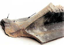 - La rupture due à une contrainte excessive a pris son origine dans la soudure aluminothermique, au sommet du patin du rail et du côté extérieur, ce qui indique que le rail subissait une tension à cet endroit et qu'une force était appliquée du côté intérieur.