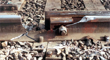 Les dommages aux trous d'éclissage ont causé la formation de deux précriques dans le rail. Du fait de leur position, elles n'auraient pas été détectées non plus lors des inspections mensuelles des branchements. Les deux précriques étaient assez étendues pour affaiblir le rail au point que le rail se brise sous l'effet des efforts latéraux consécutifs au choc du wagon déraillé contre le coeur de croisement.