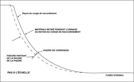 - Alors qu'il est impossible de déterminer avec précision le moment où les piqûres de corrosion et les fissures de fatigue apparaissent dans les rayons des congés de raccordement, il peut arriver que de petites fissures de fatigue soient présentes et passent inaperçues pendant le processus de remise à neuf, et ce même si les critères du manuel G-II de l'AAR sont respectés.
