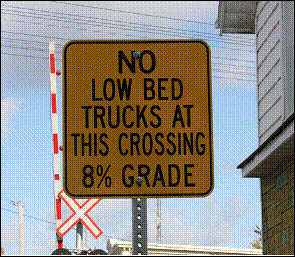 - Comme des milliers de remorques à faible garde au sol circulent sur les routes du Canada, l'absence de signalisation uniformisée destinée à identifier les passages à niveau dont le profil est abrupt fait en sorte que des camions risquent encore de rester immobilisés sur des passages à niveau.