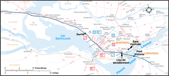 Durant le voyage depuis Toronto (Ontario), le train a circulé sur plusieurs systèmes de détection en voie, le dernier étant situé au point milliaire 4,8 de la subdivision Montréal, sans qu'aucune alarme n'ait été déclenchée.