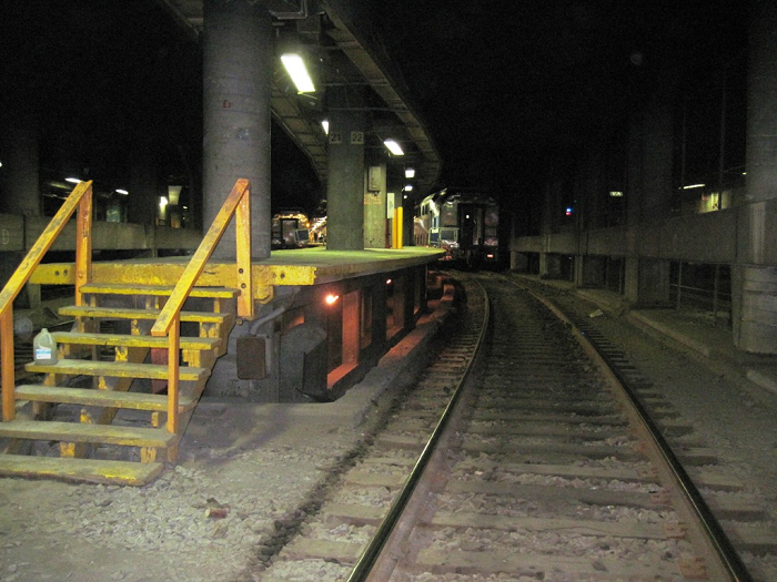 La locomotive de tête s'est arrêtée à environ 440 pieds à l'ouest du début du quai d'embarquement de la voie 22. L'essieu monté arrière du bogie avant de la locomotive de tête a déraillé du côté nord de la voie. Les roues sud des 3 autres essieux montés de la locomotive ont déraillé du côté intérieur du rail. Sur la voiture à voyageurs déraillée, l'essieu monté avant du bogie avant a également déraillé à l'intérieur du rail.