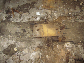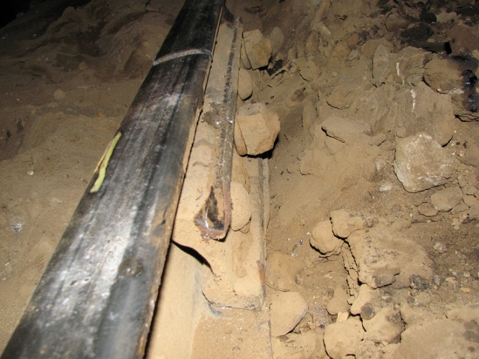 - Les axes des crampons à section arrondie étaient corrodés juste sous le champignon, à l'endroit où les crampons viennent en contact avec les selles. La réduction du diamètre des crampons atteignait jusqu'à 5/16 de pouce.