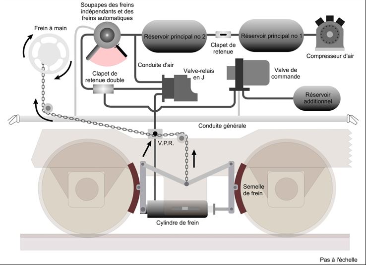 Les trains ont deux types de freins à air : les freins automatiques et les freins indépendants.
