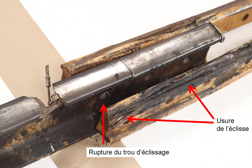 - Le premier wagon non déraillé, le 32e, s'est arrêté avec son essieu monté avant sur le rail à l'extrémité ouest de l'éclisse brisée.