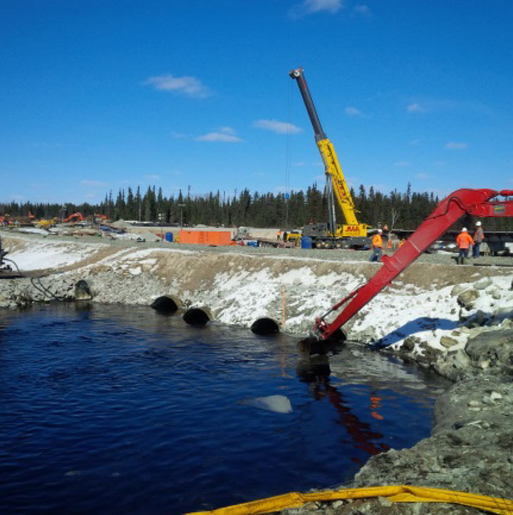 On a dragué le sédiment du lit de la rivière avec l'approbation du Ministère des Richesses naturelles et des Forêts de l'Ontario, du Ministère de l'Environnement et de l'Action en matière de changement climatique de l'Ontario, et Pêches et Océans Canada. Le dragage comprenait le retrait par aspiration du sédiment d'une section de la rivière commençant en amont du pont ferroviaire du CN et se terminant en aval du pont routier Bailey. Une évaluation des risques écologiques comprenant la récupération et l'analyse d'échantillons de sédiment prélevés à différents endroits de la rivière a servi à définir les points de début et de fin du retrait du sédiment. On a retiré le sédiment jusqu'à une profondeur de 15 cm à 30 cm, selon la topographie du lit de la rivière. On a transporté les échantillons contaminés jusqu'à des installations certifiées, où ils ont été éliminés.