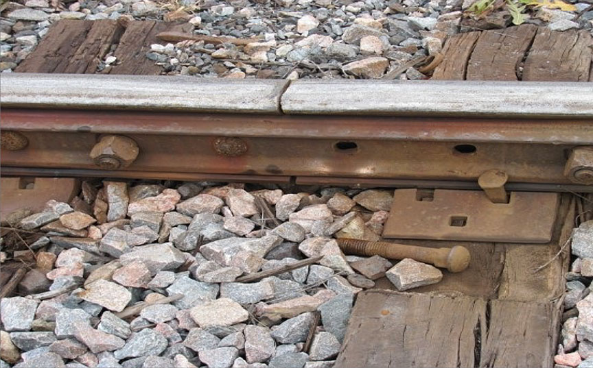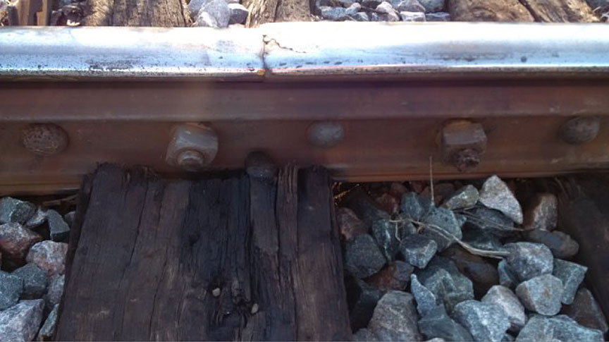 - Si des joints de rail contenant des étoilures de trou d'éclissage demeurent en voie et ne sont pas surveillés régulièrement, le défaut peut augmenter de taille sans être détecté et produire des fissures ou des bris, ce qui augmente le risque de déraillement.