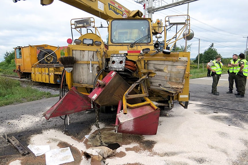 L'opérateur de la multi-grue, un mécanicien qui était à bord du wagon à outils, le conducteur du camion et son passager ont subi des blessures mineures.