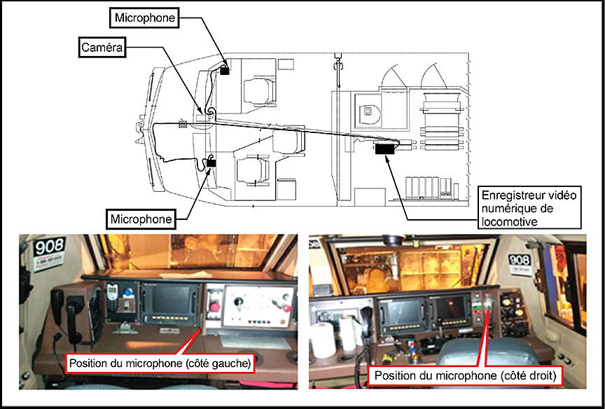 - On obtient une quantité notable de renseignements sur la façon dont l'équipe manipule diverses commandes de la locomotive ainsi que sur ses réactions aux signaux externes de contrôle des trains et aux alarmes sonores en examinant les données des enregistreurs audio de bord de pair avec celles d'une caméra orientée vers l'avant. L'information est d'autant plus utile si on ajoute les données GPS et du CEL.