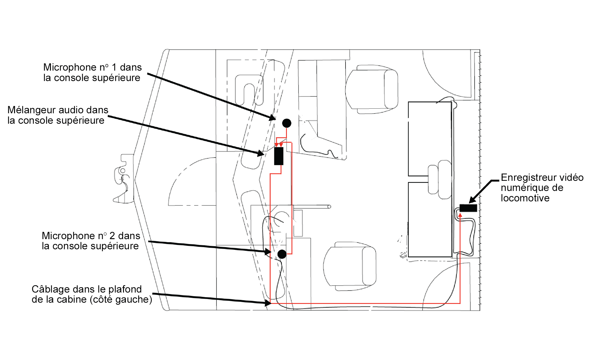 le ministère des Transports exige que toutes les locomotives de commande utilisées dans le cadre des activités sur lignes principales soient pourvues de caméras vidéo dans la cabine.
