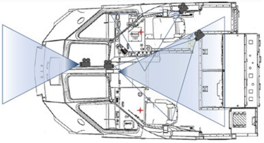 - Enregistreurs vidéo seulement : La qualité et la couverture (angles de vue, champ de vision) du système influent sur la capacité des observateurs d'évaluer les facteurs opérationnels et humains (p. ex., interaction des membres de l'équipe). Un système offrant l'image la plus complète et la plus directe des membres de l'équipe est le plus efficace.